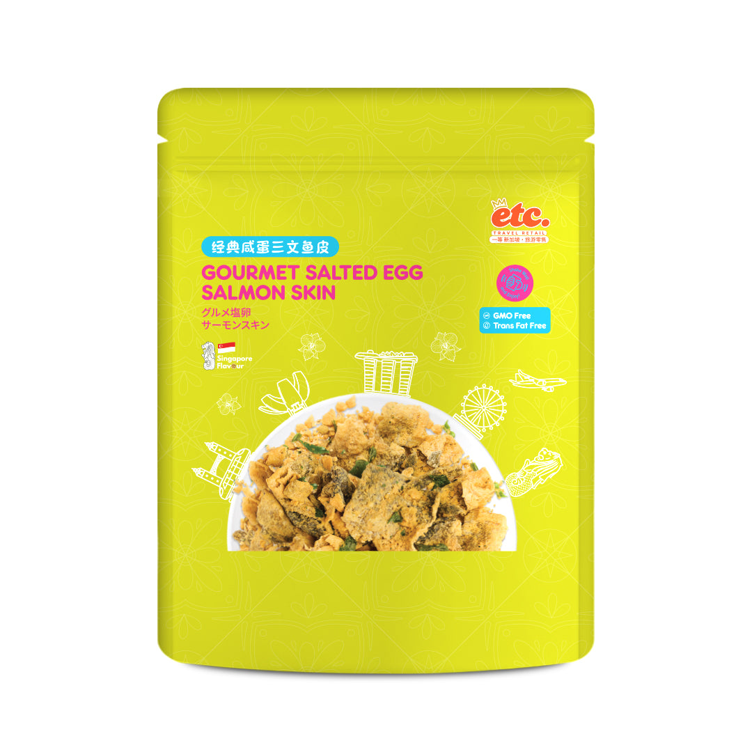 Discover the irresistible taste of Singapore with ETC’s best-selling Salted Egg Bundle — a true local favorite! This indulgent trio features Salted Egg Fish Skin, Salted Egg Salmon Skin, and the Salted Egg Classic Mix, all crafted to deliver that rich, savory crunch Singaporeans love. Proudly GMO-Free and Trans Fat-Free, this bundle is perfect as a snack or souvenir, offering a delicious taste of Singapore’s authentic culinary flair in every bite.